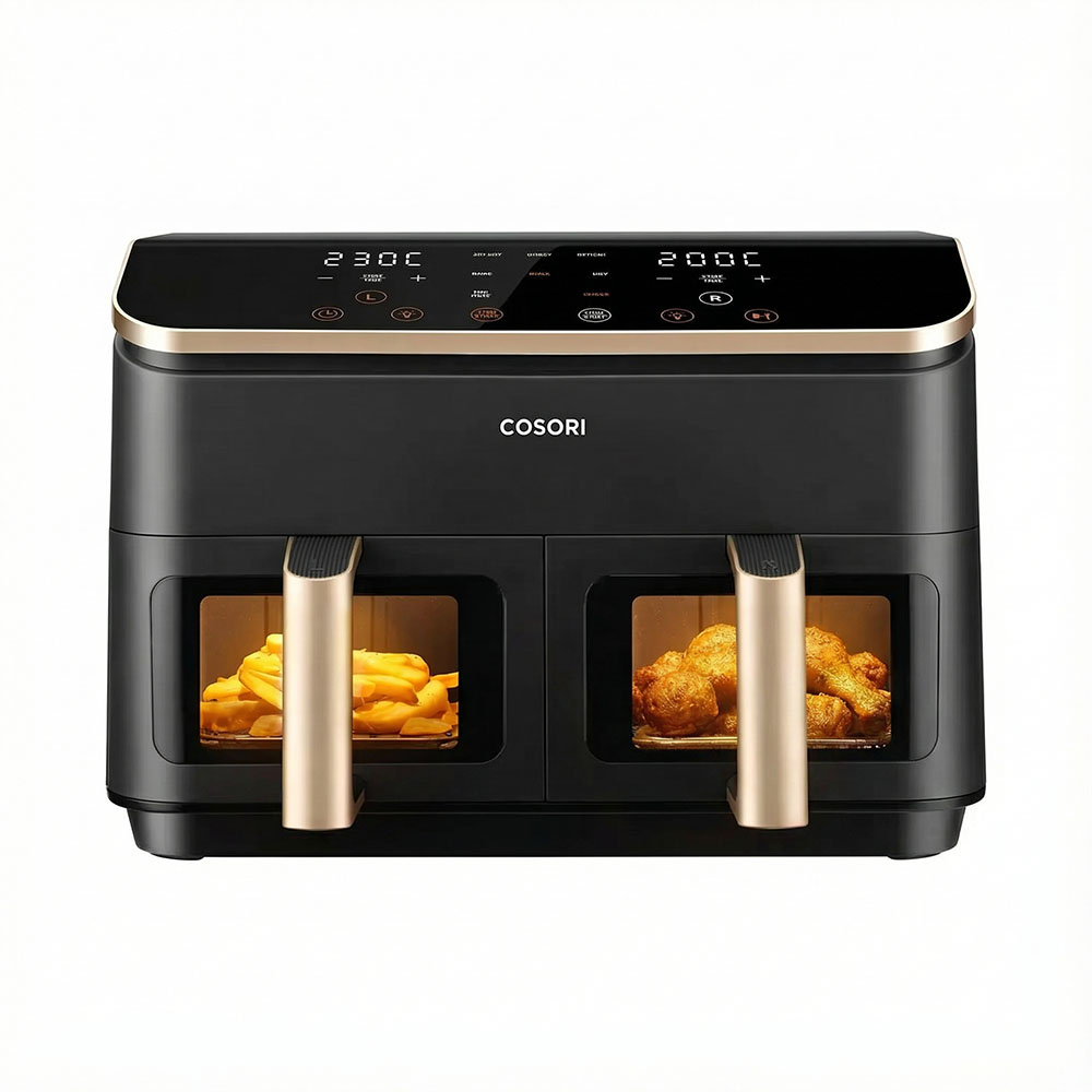 Friteuza cu aer cald, Cosori CAF-R903-AEU, 2 compartimente, 6-in-1, zona dubla, XXL, 8.5 L, fereastra de vizualizare, 1750 W, Negru/Auriu